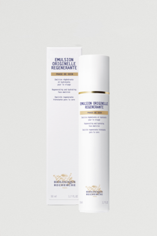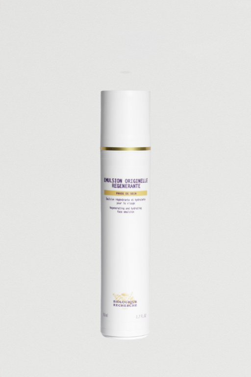 Emulsion Originelle Régénérante is a rich and soothing cream for the face. Made with macadamia oil and plant-derived squalane, this face cream regenerates skin’s natural lipidic barrier while protecting it from environmental damage. When applied, it instantly makes the skin look more even and the complexion brighter.