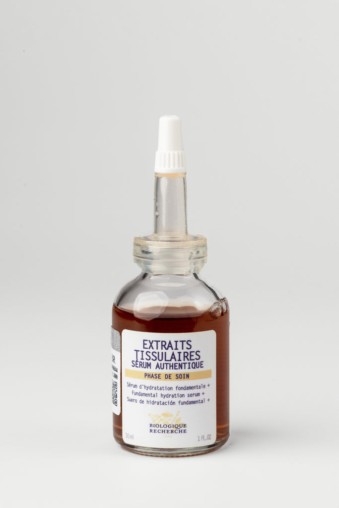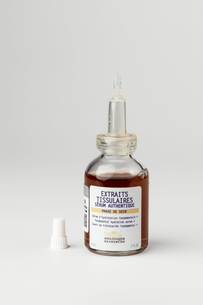 Extraits Tissulaires serum is an instant moisturizer with anti-dehydration properties. Its formula is designed to continuously capture and diffuse water to restore the skin’s water balance. The combined action of its active ingredients helps kickstart the skin’s internal hydration mechanisms, slow down imperceptible water loss, and strengthen the hydrolipidic barrier so natural hydration mechanisms are restored. Skin quality is visibly improved. The skin is moisturized, regulated and protected from harsh environmental stressors.